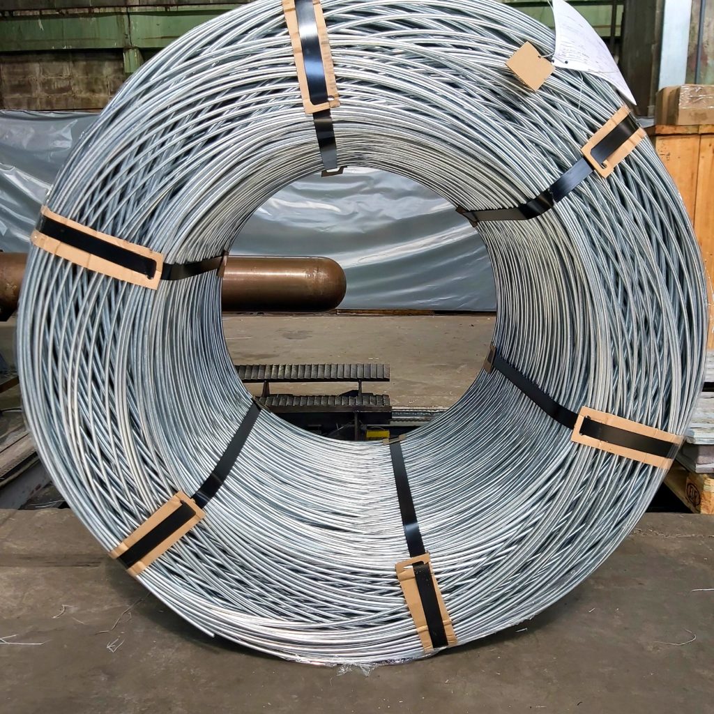PJSC „Dniprometiz“ begann mit der Produktion von kohlenstoffarmem Stahldraht mit Zinkbeschichtung gemäß den Anforderungen von DSTU EN 10244-2 (Klasse C, D) mit einem Durchmesser von 7,0-8,0 mm in Rollen mit einem Gewicht von bis zu 1500 kg. Die Größe des Außendurchmessers der Spule beträgt 1300 ± 100 mm, die Größe des Innendurchmessers der Spule beträgt 800 ± 100 mm.